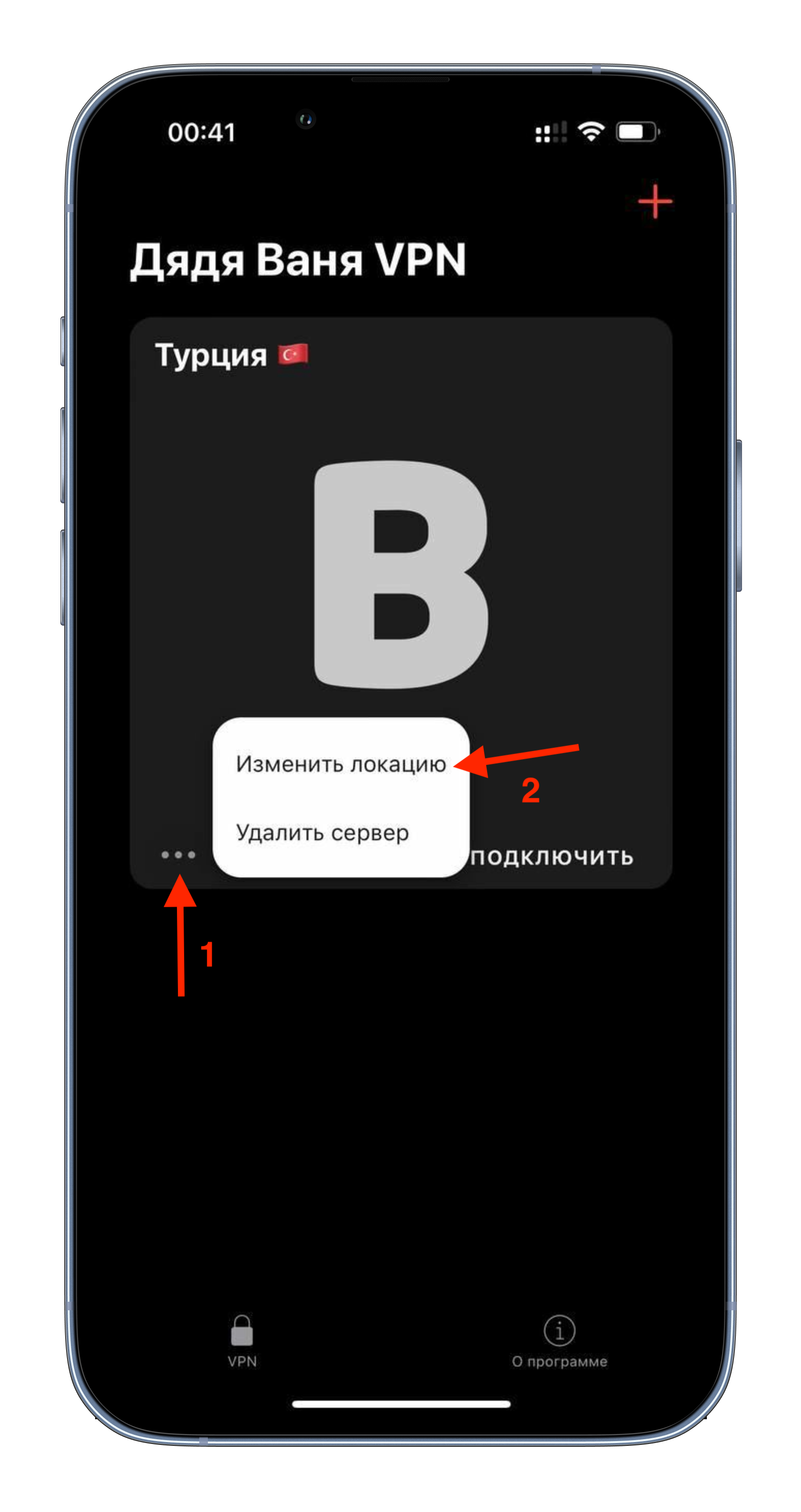 Нажмите на три точки на карточке сервера и выберите пункт «Изменить локацию».