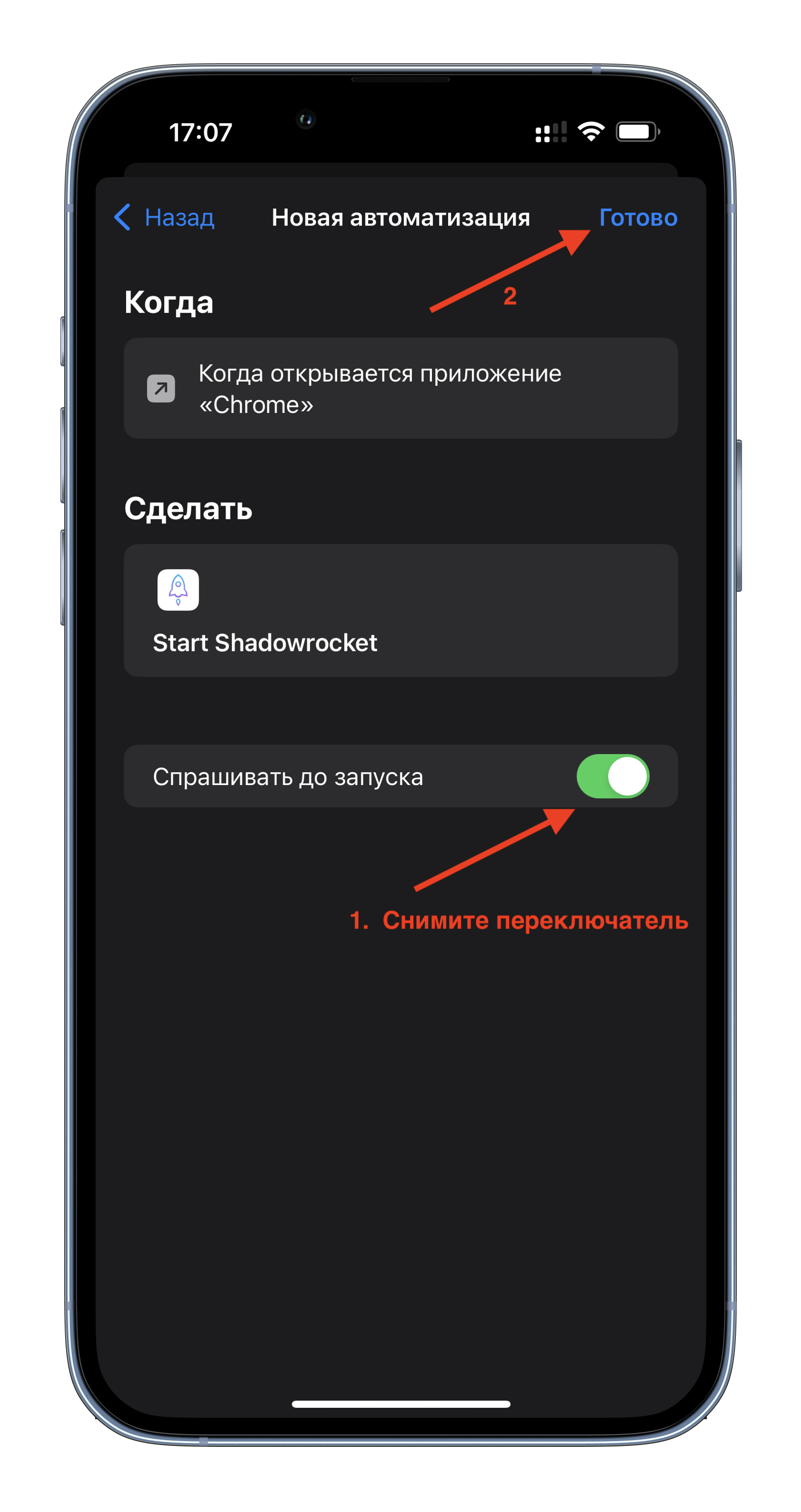 Отключим флажок «Спрашивать до запуска», чтобы автоматизация работала полностью незаметно, и нажмём «Готово»