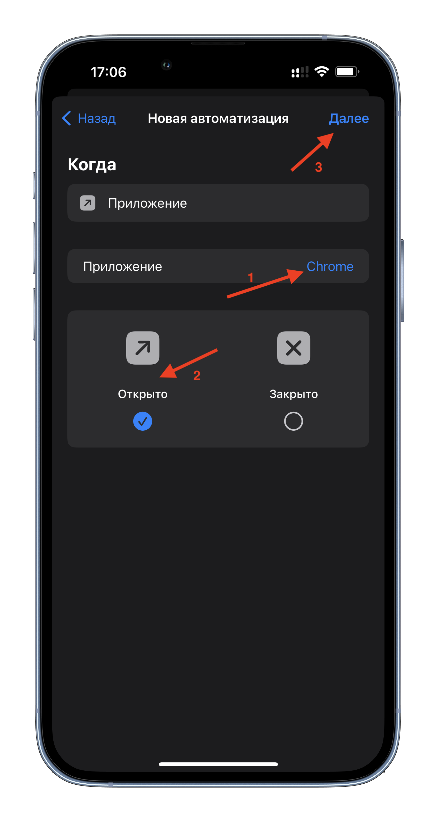 Зайдём в приложение, которое мы выбрали при создании автоматизации. В нашем примере это был Google Chrome. В первый раз система попросит установить VPN-адаптер. Нажмите «Разрешить» и подтвердите паролем от телефона.
